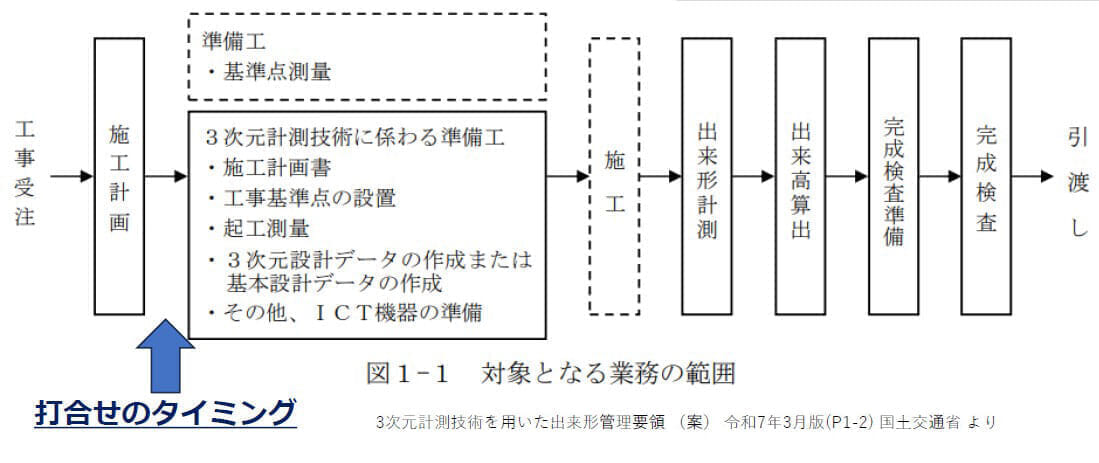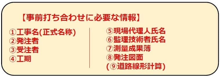 ICT建機による施工の事前打ち合わせには、下記の情報をご用意いただけるようお願いしております。