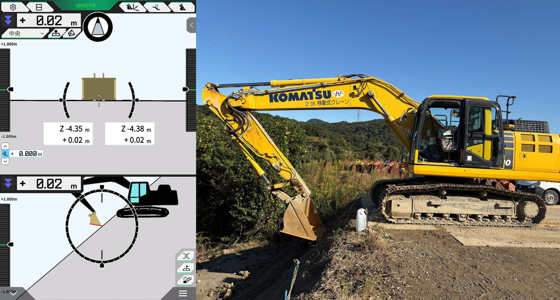 GNSS(全地球測位衛星システム)からの位置情報と3D設計データに基づき、バケットやブレードの高さ・角度が自動調整されるため、従来はオペレーターの経験に頼っていた作業の精度が向上します。